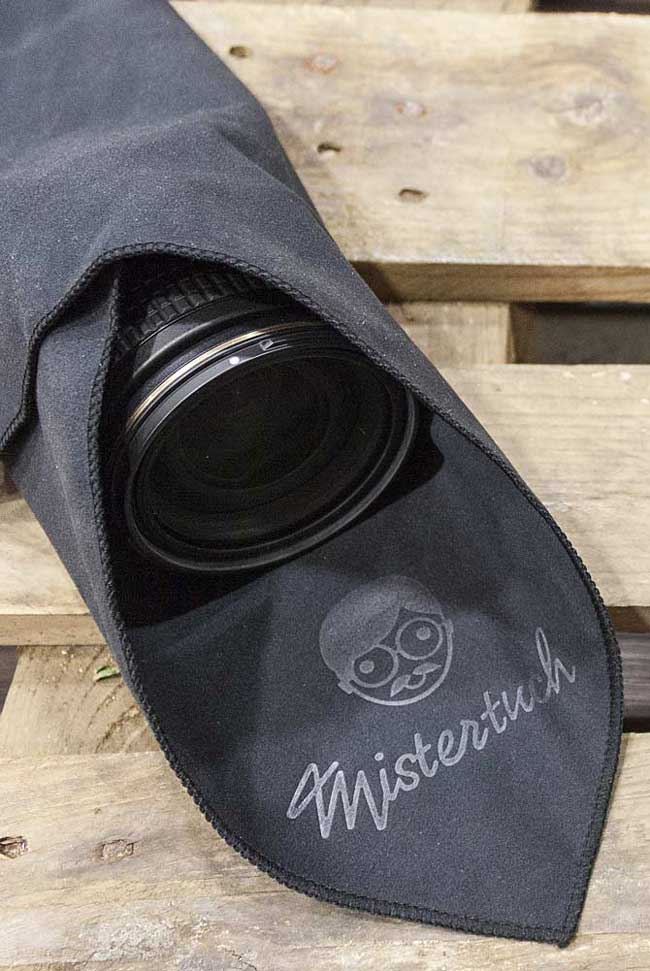 Das weiche, doppellagige Mikrofaser-Material reinigt auch hochsensible Oberflächen schonend und ohne bleibende Schäden. Vorder- und Rückseite des Tuchs sind durch stabile, gekettelte Nähte miteinander verbunden. Der stabile Gummiring dient zum Aufhängen des Tuchs beispielsweise am Stativ, um es direkt und jeder Zeit griffbereit zu haben. Eine Echtleder Schlaufe unterstreicht den hochwertigen Charakter von Mistertuch®.